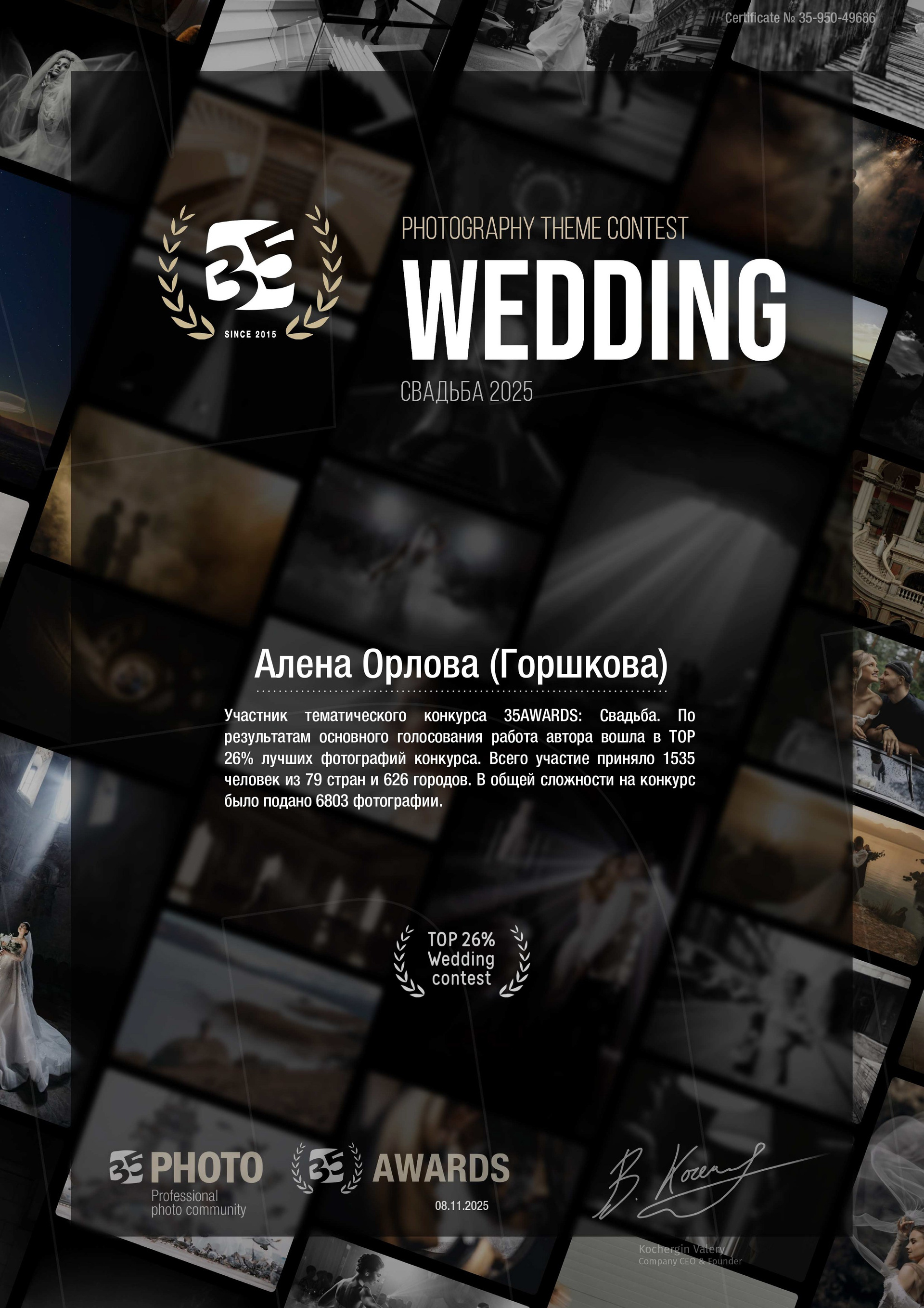 Регулярно обучаюсь и повышаю свой уровень мастерства. Участвую в выставках и конкурсах. Регулярно попадаю в ТОП лучших фотографов и фотографий конкурсов.